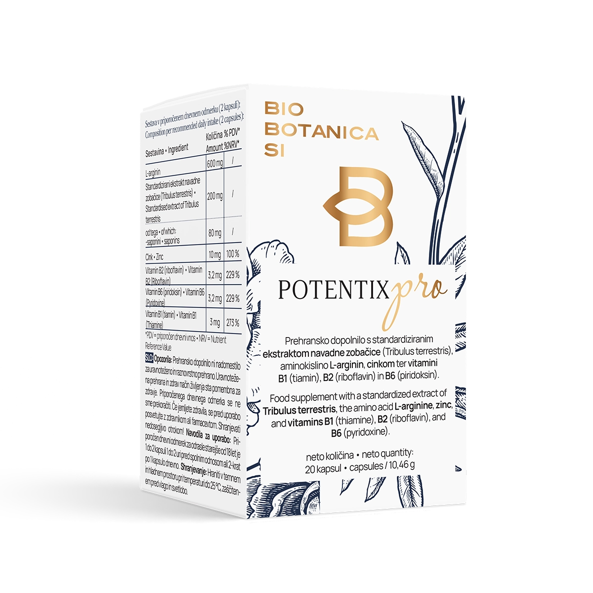 Komplet vsebuje: 2 × prehransko dopolnilo POTENTIX PRO v kapsulah I vsak izdelek po 20 kapsul