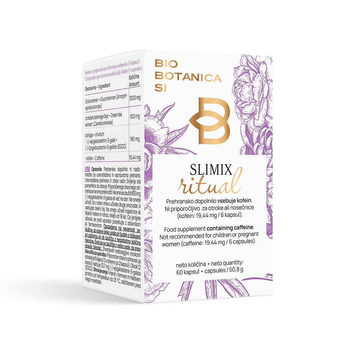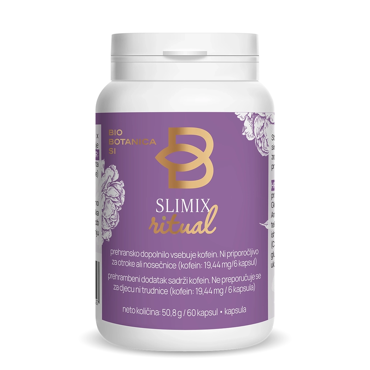 Komplet vsebuje: 2 × prehransko dopolnilo SLIMIX RITUAL v kapsulah I vsak izdelek po 60 kapsul
